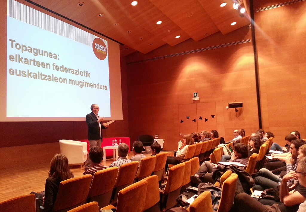 Egokitu zitzaidan gai estrategiko potoloa izan zen federazioaren II Kongresua. 2011n egina zuten I Kongresua, oinarri filosofikoak –oinarriparrak– finkatzeko, eta bertan aurreikusi zuten oinarri haiek ekintzara begira jartzeko bigarren kongresu bat beharko zela. Nik ez nuen parterik hartu lehen fasean, baina haren berri izan nuen eta dokumentuetan jasotakoa gustatu zitzaidan. Oinarriparrei tiraka bigarren fasea diseinatu genuen eta beste hitz bat asmatu –eraldabideak– helburua adierazteko: euskara elkarteak eta haien federazioa eraldatzeko ildoak eta palankak. Kongresura ahalik eta trinkoen iristeko prozedura bat proposatu nuen elkarteen parte-hartzea errazteko, Euskal Herrian barreiatutako 100 elkarterekin lan egiteko zailtasunen jakitun.