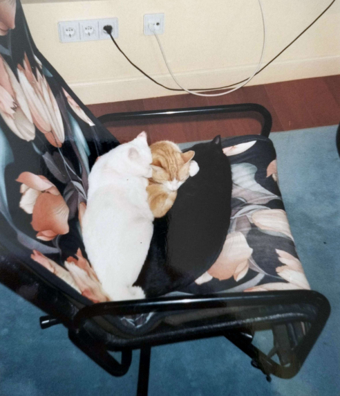 Etxean bizitzen jarri, txorizoa iltze batetik zintzilikatu eta segituan hasi ziren saguak hura jaten. Gu baino lehenagotik bizi ziren bertan eta urte t’erdiz eduki genituen etxetik kanpo kanpinean, obrek iraun bitartean. Haiei eusteko katua beharko genuela eta berehala ekarri ziguten kumetxo bat. Dena ikasi behar izan genuen berarekin. Autoak harrapatuta hil zen hilabetera eta sekulako inpresioa jaso genuen. Harrezkero ez dugu sekula katurik falta izan.