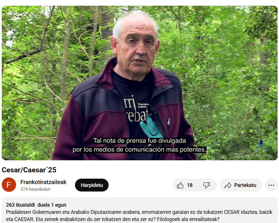 -“César y Nerón no van a ocultar las destrucciones de la excavadora en Iruña-Veleia / Cesar eta Neronek ez dituzte Iruña-Veleiako eskabadoraren suntsiketak estaliko” Iruña-Veleia Argitu, ez Suntsitu Plataforma, maiatza 26, 2025.