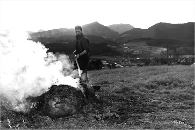 Dentro del caserío también hay movimiento, en la cocina y en el antiguo establo se prepara todas las verduras en unas grandes cazuelas. Hoy es día de fiesta en el caserío Uriko-Garaikua.