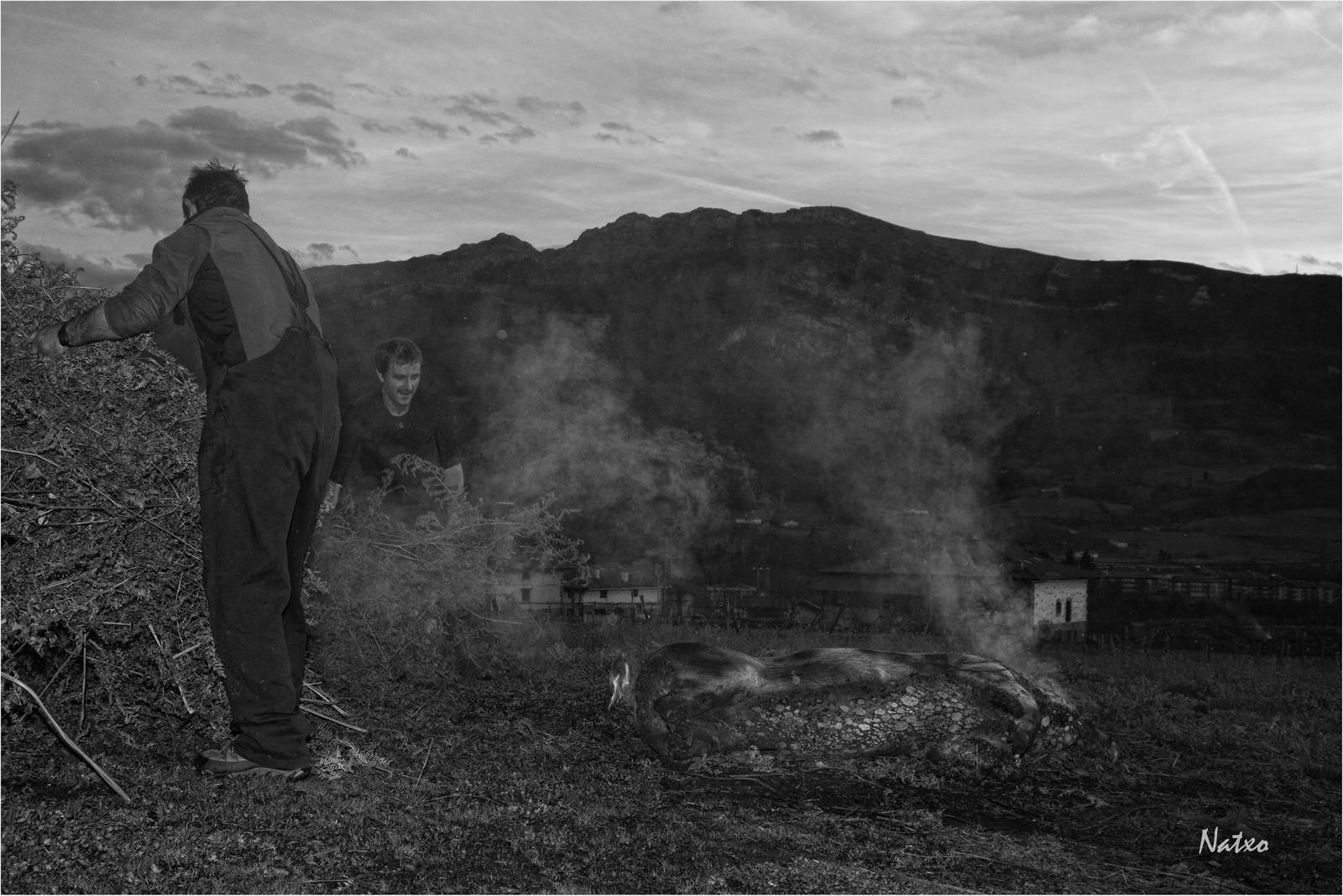 De nuevo se junta la familia, son tres los animales que se van ha sacrificar, todo esta preparado y cada uno sabe cual es su trabajo. Hoy falta el más veterano y se le echa en falta, pero han venido algunos jóvenes que aportaran sus fuerzas y todo lo que se les indique.