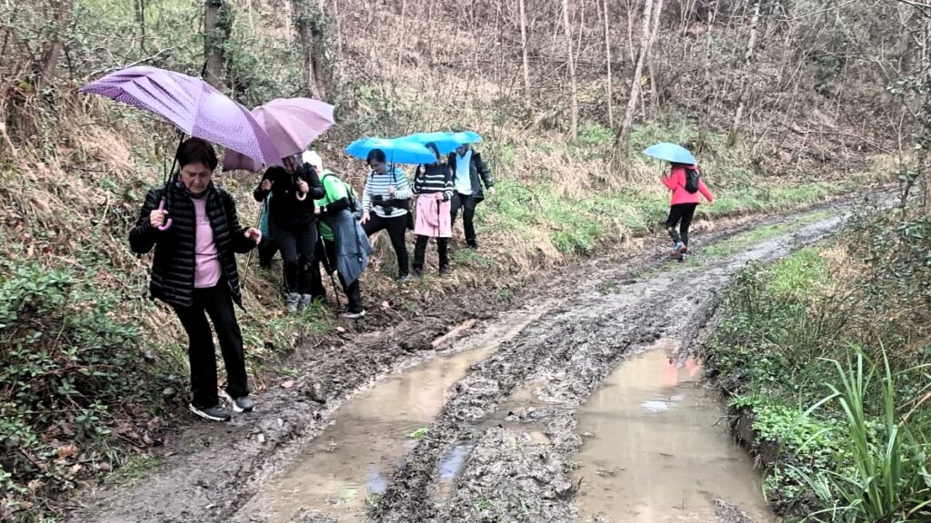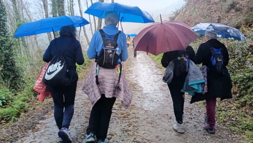 Eta eguna heldu da. Dena prest: San Isidron, parte-hartzaileentzat orniketa banatzeko taldea, kaxak, poltsak…, zunba egiteko musika eta monitorea ere bai, zunba zaleak hurbiltzen, laino ilunak ere, guregana… Giroa freskoa, zunba eta bost kilometroko ibilaldia egiteko, egokia. Aukeran nahiago genukeen beste bat, kalea jendez beteko duena, baina hau da gaur daukaguna. Beraz, giro ilunari aurpegi argia erakutsi.