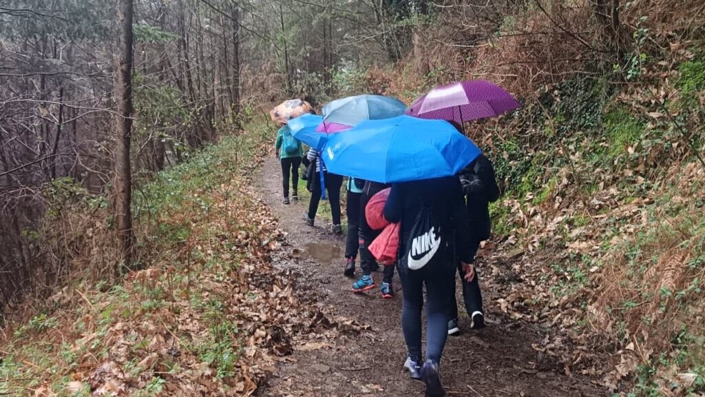 Gaurko eguraldia ikusgarria, ibilbidea gozatzeko modukoa. Parajeaz gain, gurean dagoen tradizio bateaz ere disfrutatzeko asmotan goaz. Karnabal ostean, Garizuman, karapaixoa elementu berezia da. Amapontekoek beraien besoetakoari oparitzen dioten ogi berezia da. Ogi horrek hiruki forma du, hiru arraultza eta txorizoaz osatuta, baina Aramaion sagarra ere jartzen zaio, gurea gaurkoan sagarduna da. Ederra gaurko merienda, ogiak ogia baina pastela dirudi, zelako goxoa!! Bukaeran, aho batez, datorren urterako txorizoaren ordez sagarrak jartzea eskatuko dugula erabaki dugu. Hori arrakasta!