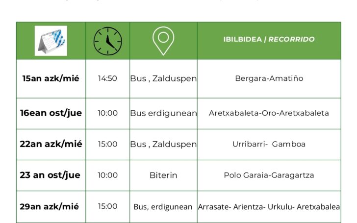 Argazkiak: I.U., sasoibide sasoibie+: IKURRIÑATIK, IKURRIÑARA (2025-10-15) Ikasturte berria, eta talde gidaria ere, berria. Sasoibideko lagunak, oraingoan ere, prest aurrera egiteko, lagunarte atseginean. Asteroko irteerei ekingo diogu, asteazken eta ostegunetako pasierak; Bixi Bizi tailerrak aldiz, asteazken goizean izango dira, hilean…